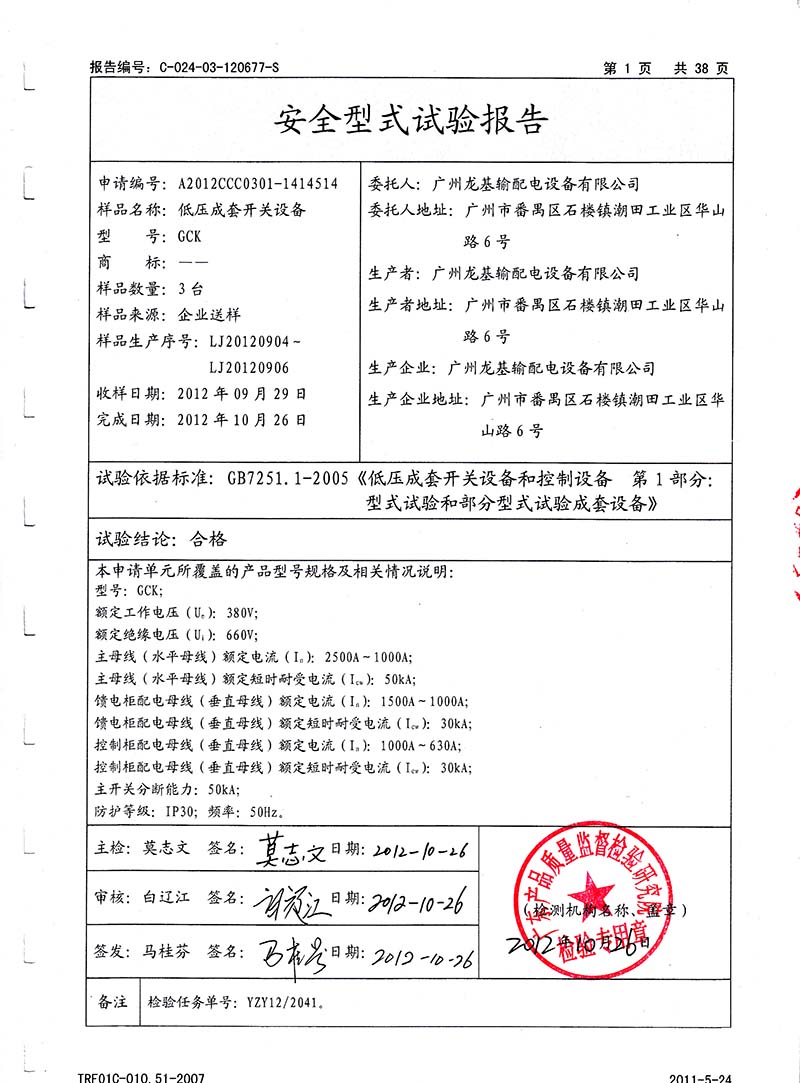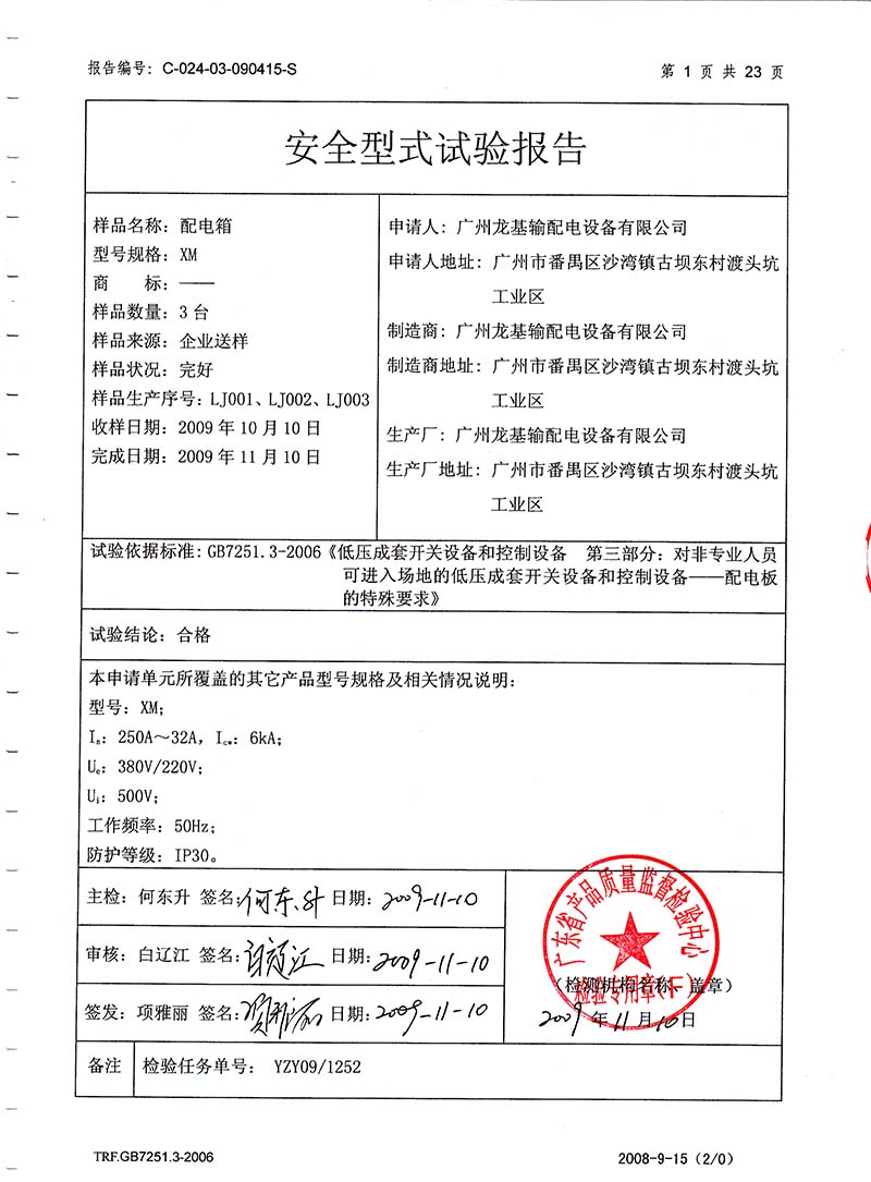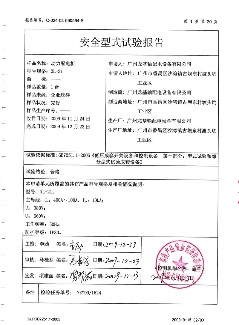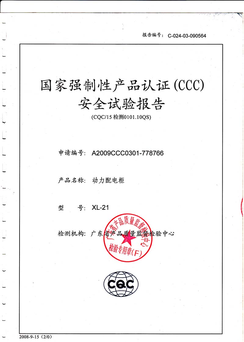 動(dòng)力配電柜檢驗(yàn)報(bào)告第1頁