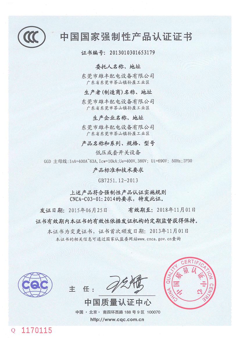 低壓成套GGD“3C”認(rèn)證