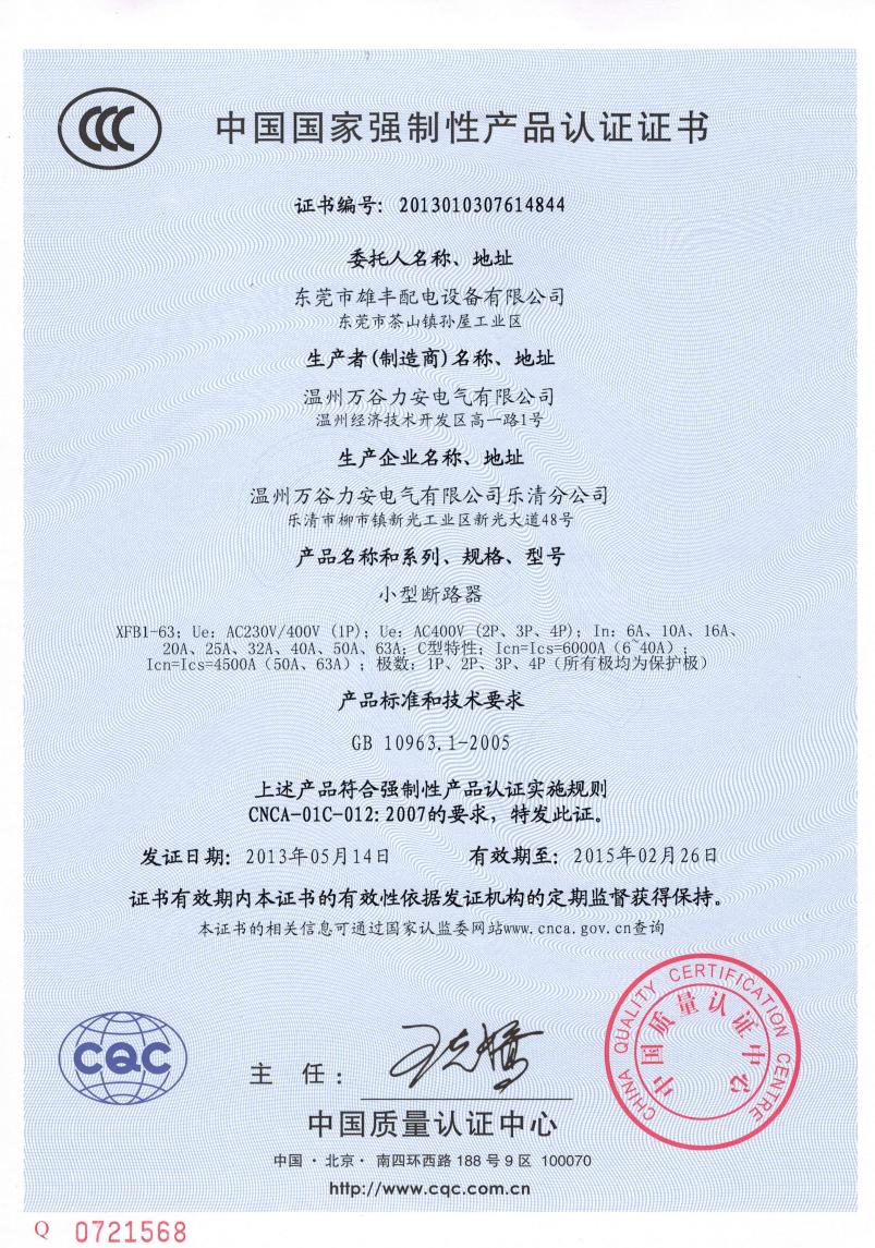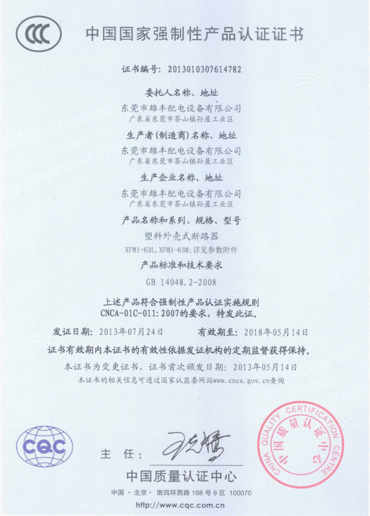 電流保護(hù)動作斷路器“3C”認(rèn)證