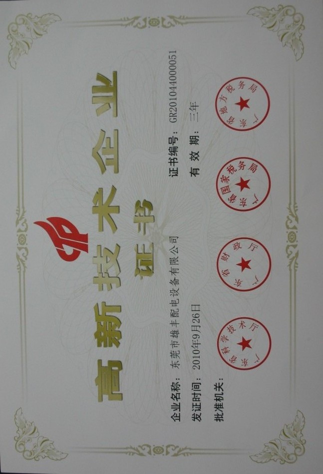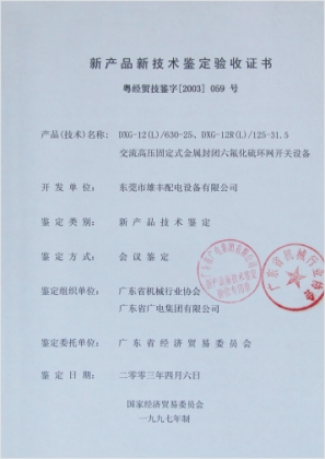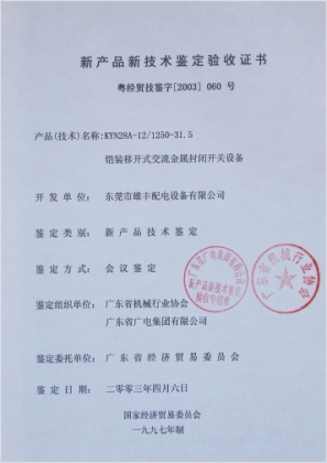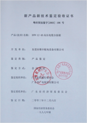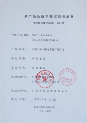 高壓新產(chǎn)品鑒定驗(yàn)收證書