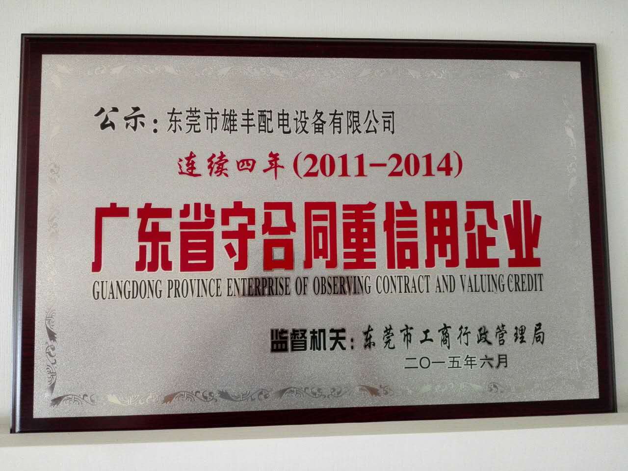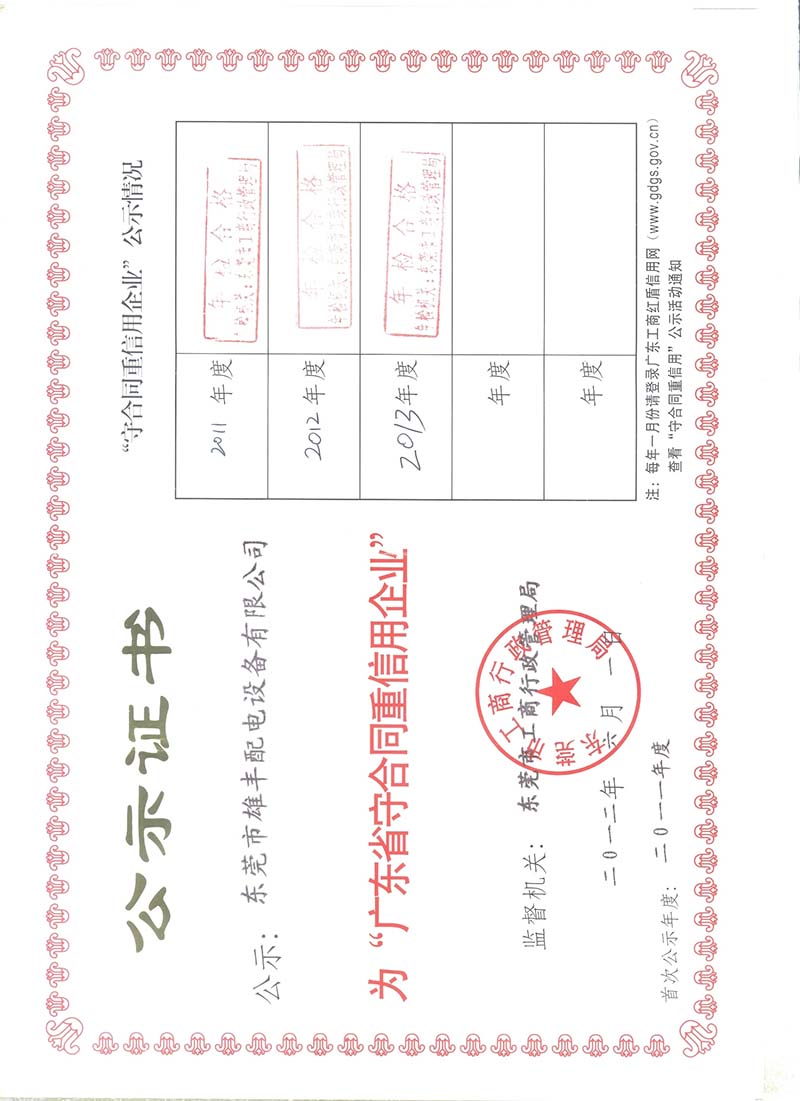 廣東省守合同重信用企業(yè)公示證書