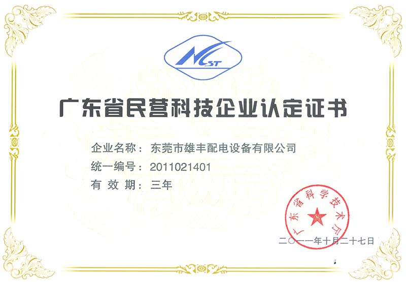 廣東省民營科技企業(yè)認(rèn)定證書