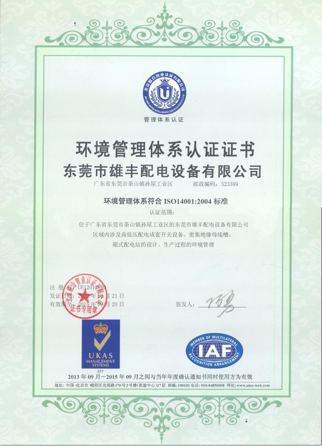 環(huán)境管理體系認(rèn)證證書