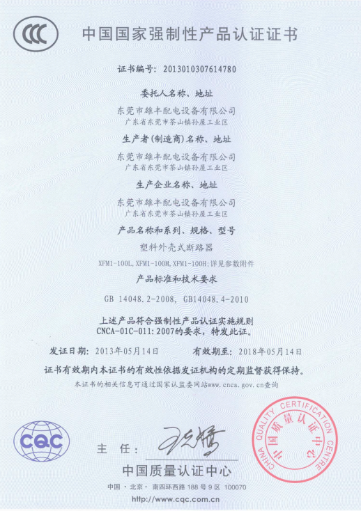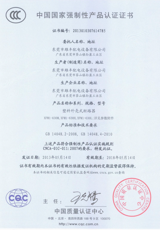 塑料外殼式斷路器“3C”認(rèn)證