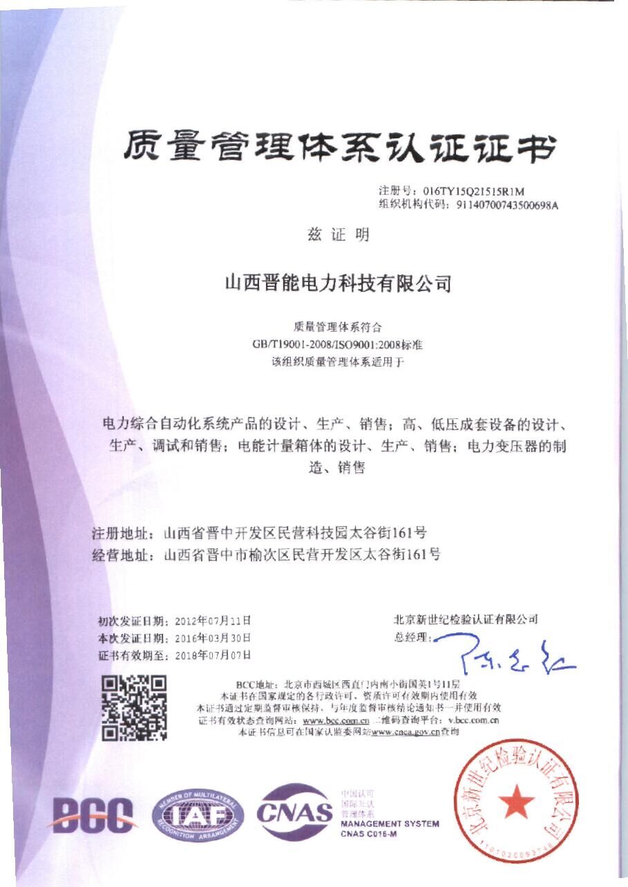 質量管理體系認證證書
