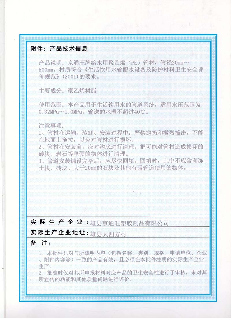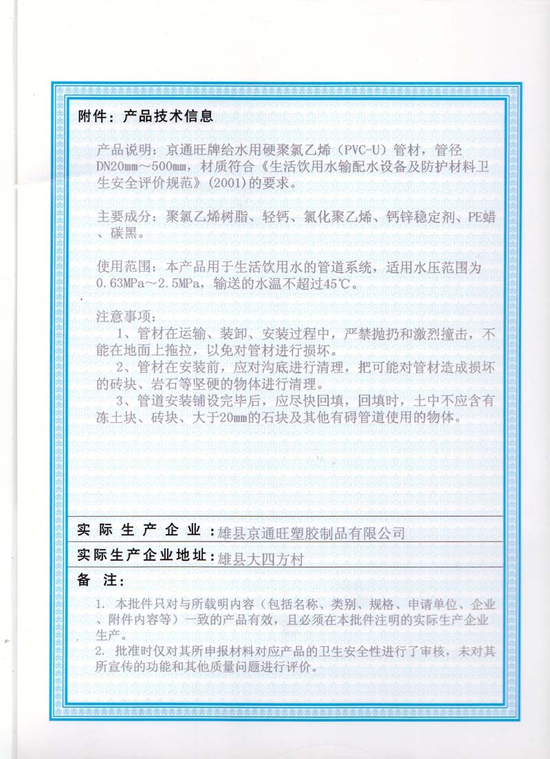 雄縣京通旺塑膠制品有限公司位于京、津、石經(jīng)濟帶中心,南臨白洋淀,東臨京/九鐵路,交通便利。本公司是一家專業(yè)從事管道生產(chǎn)制造的高科技企業(yè),擁有國內(nèi)外先進的塑膠管材生產(chǎn)設(shè)備,擁有高素質(zhì)的職工隊伍。公司主導(dǎo)產(chǎn)品為電力管道系統(tǒng)(MPP電力管、PVC-C高壓電力管、CFRP碳素螺紋管、SBB玻璃鋼電纜保護管);通訊管道系統(tǒng)(HDPE、PVC雙壁波紋管、梅花管、三色光纜管、PE過道頂管、硅芯管、PVC方孔格柵管);給水管道系統(tǒng)(PE給水管材、管件);排水管道系統(tǒng)(PE雙壁波紋管、PVC雙壁波紋管)。產(chǎn)品廣泛應(yīng)用于建筑、工程、電信配套工程、給排水管道工程、電線電纜管道工程、農(nóng)業(yè)灌排工程、高速公路工程等。公司通過SO9001:2000國際質(zhì)量體系認證和國家塑膠制品質(zhì)量監(jiān)督檢驗中心、國際化學(xué)建筑材料檢測中心檢驗合格,產(chǎn)品暢銷國內(nèi)20多個省市自治區(qū)。本公司一直以科技求生存,以誠信求發(fā)展,堅持“質(zhì)量第一,信譽第一”的宗旨,客戶需求是我們不懈的追點擊查看