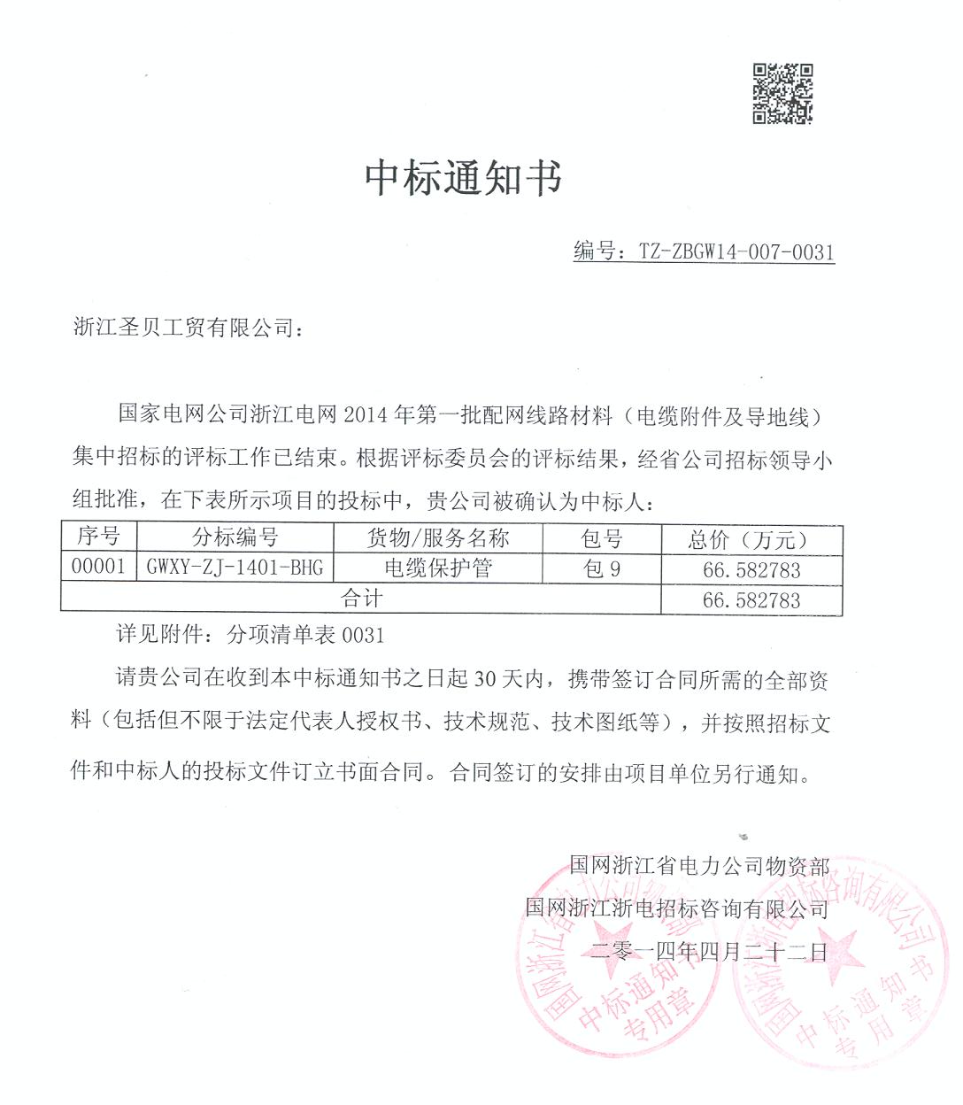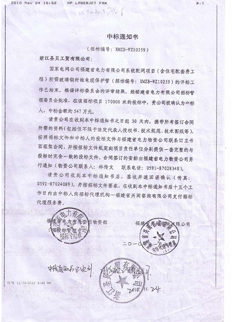 浙江圣貝工貿(mào)有限公司占地15000平方米,固定資產(chǎn)1336萬元,流動資產(chǎn)2213萬元,現(xiàn)有員工165名,科研和技術(shù)人員12名,質(zhì)量監(jiān)督員6名,質(zhì)檢員4名,公司在上海玻璃鋼研究所及哈工大的幫助下共同研制了承插式接頭的玻璃鋼管,首先用作電纜保護管,經(jīng)營狀況良好,在全國上市應(yīng)用領(lǐng)先、產(chǎn)品質(zhì)量領(lǐng)先、工藝技術(shù)領(lǐng)先、銷售數(shù)量領(lǐng)先、售后服務(wù)領(lǐng)先。該產(chǎn)品設(shè)計合理、結(jié)構(gòu)緊湊、實用新穎,并以科學(xué)的樹脂配方、嚴(yán)密的生產(chǎn)手段及嚴(yán)格的質(zhì)量檢測為該產(chǎn)品的優(yōu)良性能的保證。 該產(chǎn)品通過浙江省工業(yè)新產(chǎn)品鑒定,列入2004年創(chuàng)新項目計劃:通過了ISO9001:2008質(zhì)量體系認(rèn)證;ISO14001:2004環(huán)境管理體系認(rèn)證證書;獲得了浙江省電力系統(tǒng)電纜導(dǎo)管使用許可證及交通部產(chǎn)品質(zhì)量檢測中心頒布生產(chǎn)安裝許可證;被評為浙江省工商企業(yè)使用AA級“守合同、重信用”單位;金華工商局企業(yè)AAA級信用等級;武義縣誠信企業(yè)單位;AAA級企業(yè)資信等級單位;浙江省工程建設(shè)重點推薦名優(yōu)產(chǎn)點擊查看