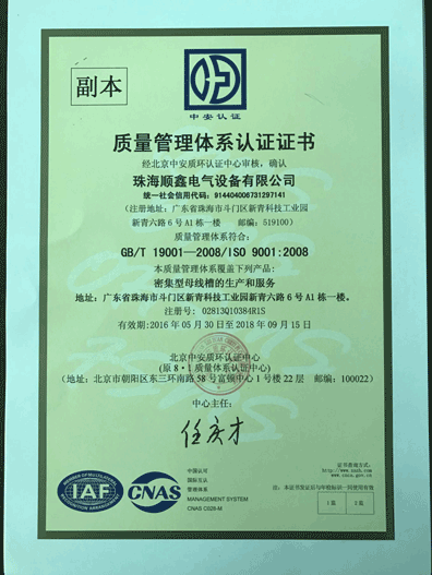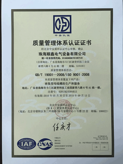 珠海順鑫電氣設備有限公司是從事高、低壓成套電氣設備、母線槽、智能電氣及輸配電設備的研發(fā)、生產(chǎn)、銷售安裝于一體的現(xiàn)代化高科技企業(yè)。公司主要產(chǎn)品包括:密集型母線槽、照明母線、耐火母線槽、高壓封閉式母線槽。公司產(chǎn)品品質通過國家強制性“3C”認證,全面實行嚴格的IS90001質量管理。滿足并適應不同工程項目的要求。 公司擁有完善的售前、售中、售后全方位的服務體系,公司遍布國內(nèi)的服務網(wǎng)絡為您的項目提供及時周到的服務,而且我們還為您提供產(chǎn)品的技術培訓及指導安裝、通電調試、產(chǎn)品維護、回應投訴等服務、我們高素質的工程技術人員為您的項目提供一攬子專業(yè)解決方案和優(yōu)質、高效、快捷的服務。 公司以市場為導向,始終把“質量、價格、服務”三方面作為運營的重點,全面貫徹“全員參與、科學管理、持續(xù)發(fā)展,創(chuàng)順鑫品牌”的質量方針。以客戶為中心,努力為客戶創(chuàng)造價值,建立長期合作伙伴關系,攜手共創(chuàng)點擊查看