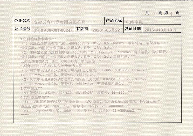 安徽天彩電纜集團(tuán)有限公司位于安徽省儀表、電線、電纜生產(chǎn)基地——天長市,是一家集研發(fā)、生產(chǎn)和銷售為一體的儀表、電線、電纜和橋架生產(chǎn)企業(yè)。公司成立于1992年,注冊資金26888萬元,總資產(chǎn)超過5億元,建筑面積四萬平方。公司通過ISO9001:2008質(zhì)量體系認(rèn)證、ISO14001:2004環(huán)境體系認(rèn)證、OHSAS 18001: 2007職業(yè)健康安全體系認(rèn)證,全國工業(yè)產(chǎn)品許可證認(rèn)證、CCC認(rèn)證、CE認(rèn)證、煤安認(rèn)證等多個(gè)國家級權(quán)威機(jī)構(gòu)認(rèn)證。公司被認(rèn)定為“省高新技術(shù)企業(yè)”、先后獲得“滁州市守合同重信用單位”、“滁州市知名商標(biāo)”, “AAA級信用企業(yè)” 、“安徽省A級納稅信用單位”等榮譽(yù)稱號,擁有13個(gè)實(shí)用新型專利。 公司生產(chǎn)的電纜產(chǎn)品包括電力電纜、控制電纜、計(jì)算機(jī)電纜、儀表電纜、橡套電纜、特種電纜、汽車新能源充電樁電纜等七大類上萬型號、規(guī)格產(chǎn)品,生產(chǎn)設(shè)備先進(jìn),檢測設(shè)備齊全,特別是橡套電纜產(chǎn)品,擁有六條現(xiàn)代化連硫生產(chǎn)線,產(chǎn)品電壓等級覆蓋高、中、低壓,礦用點(diǎn)擊查看