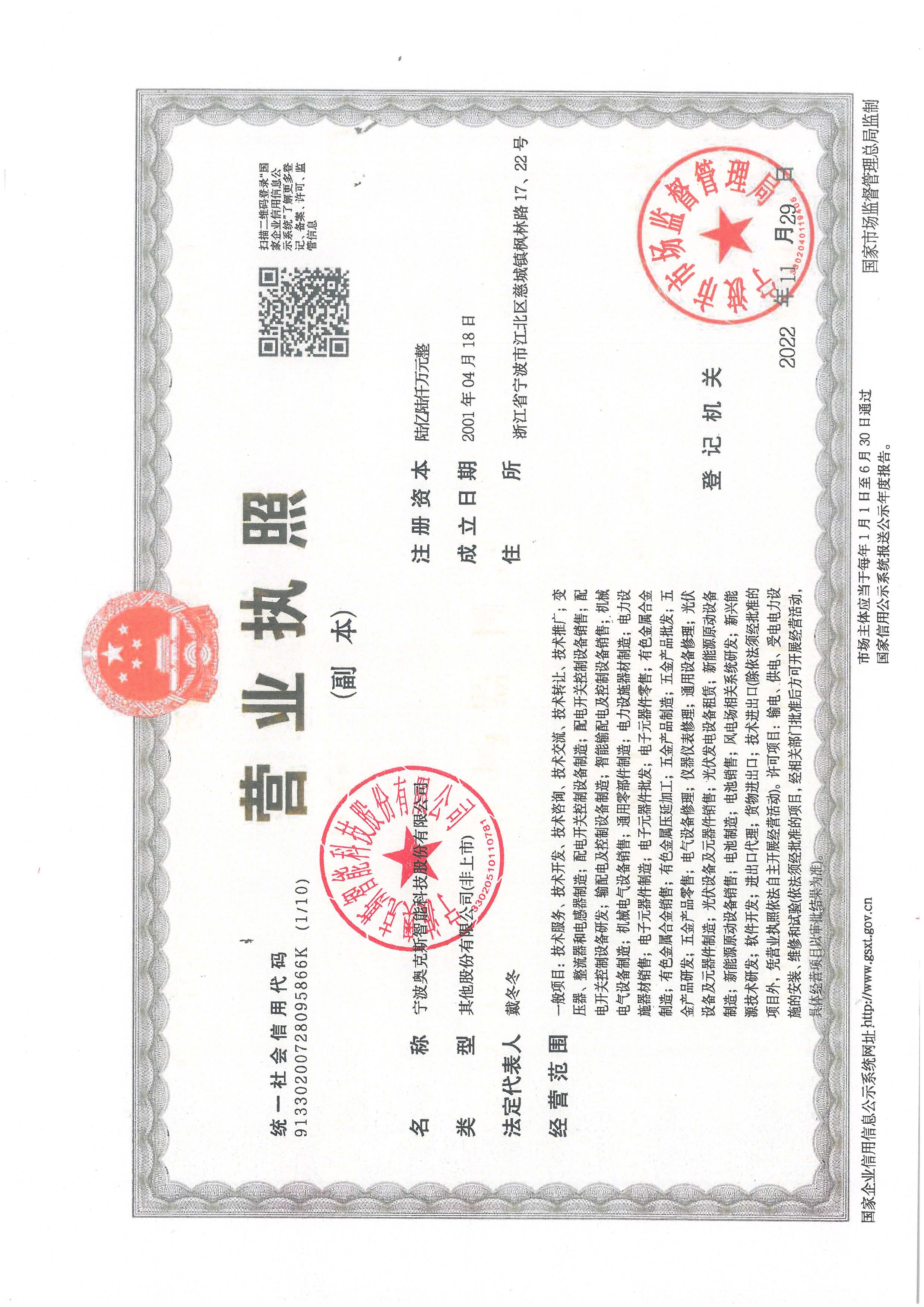 寧波奧克斯智能科技股份有限公司成立于2001年,總投資近叁億元人民幣,注冊資本金:67724.6萬元整。是奧克斯集團下屬的寧波三星醫(yī)療電氣股份有限公司控股公司,現(xiàn)有員工2000余人,其中:中、高級工程師40余人,研發(fā)設(shè)計人員60余人,生產(chǎn)技術(shù)人員80余人,占地面積約20萬平方米,年銷售收入達13億元人民幣。是國家高新技術(shù)企業(yè),浙江省名牌產(chǎn)品,信息化標桿企業(yè),并擁有國家級企業(yè)工程技術(shù)中心,已通過了ISO9001質(zhì)量管理、ISO14001環(huán)境管理和職業(yè)健康安全管理認證及國家強制性產(chǎn)品(CCC及CQC)認證。公司主導(dǎo)產(chǎn)品包括:35kV級及以下干式變壓器;35kV級及以下油浸式變壓器、35kV級及以下非晶合金變壓器、電能計量箱(歐式、美式、地埋式、燈箱式、光伏變)、高、低壓成套開關(guān)設(shè)備、小三箱(配電箱、電纜分支箱、電能計量箱)等產(chǎn)品。點擊查看