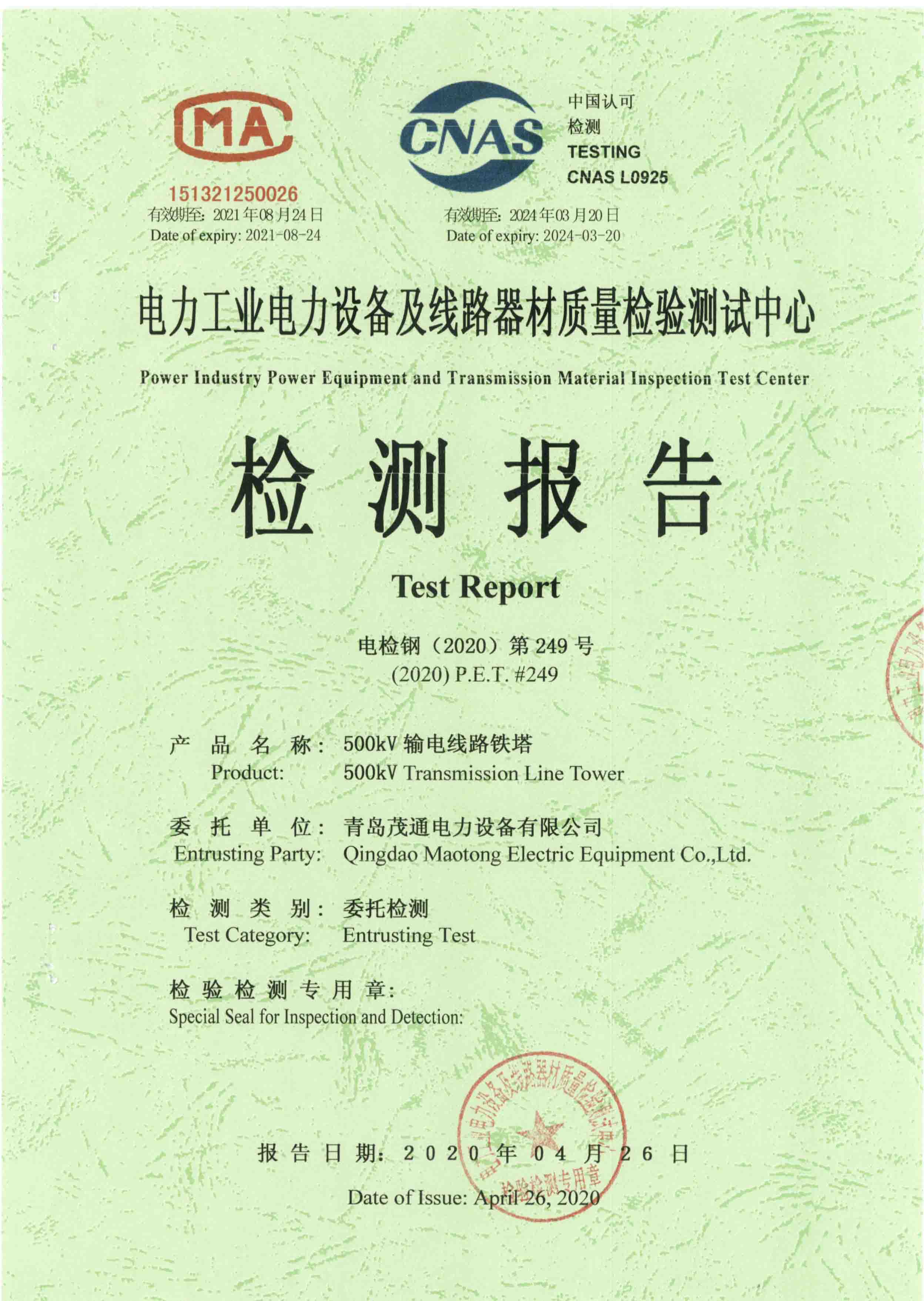 產(chǎn)品檢驗(yàn)報(bào)告