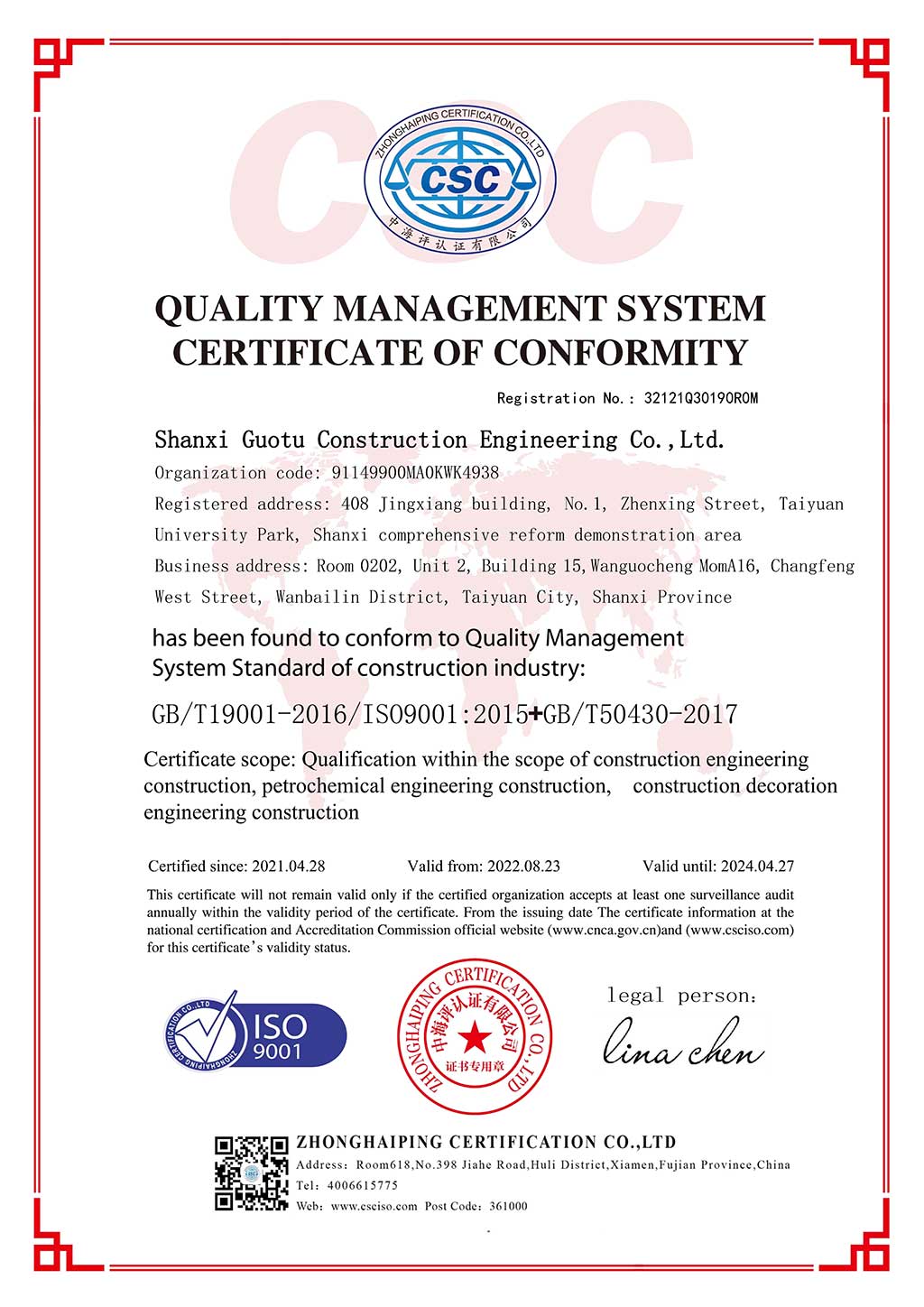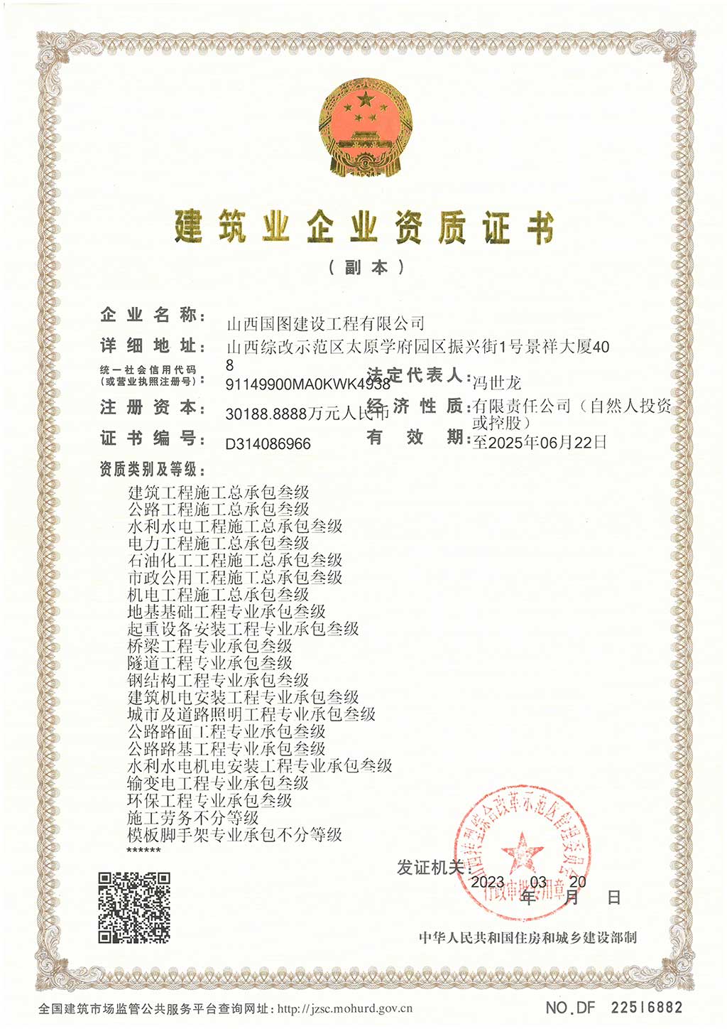 山西國圖建設(shè)工程有限公司成立于2019年12月30日,為國家房屋建筑施工總承包叁級資質(zhì),注冊資金30188.8888萬元,是房屋建筑、建筑裝修裝飾工程等為一體的綜合型公司,能承接各種大、中型工業(yè)與民用建筑的施工安裝任務(wù)。 近年來,公司自組建以來,秉承“爭創(chuàng)第一——團結(jié)、拼搏、開拓、爭先”的企業(yè)精神,以從事完全競爭性的建筑業(yè)為核心業(yè)務(wù)。 公司本著:“以質(zhì)量求信譽,以信譽求發(fā)展,以發(fā)展求生存”的宗旨,建立健全了一套先進(jìn)的質(zhì)量管理體系,制定了合理的質(zhì)量管理制度,形成縱橫交叉的質(zhì)量監(jiān)控網(wǎng)絡(luò)。為推動質(zhì)量管理機制的科學(xué)規(guī)范運行,公司實行經(jīng)理掛帥,質(zhì)檢處與施工隊、質(zhì)檢員組成質(zhì)保體系逐級負(fù)責(zé),層層把關(guān),使每個工程、工點、工種、工序的質(zhì)量自檢縱橫交叉,互測互檢,不留空檔,使生產(chǎn)施工的全過程始終處在嚴(yán)格的質(zhì)量監(jiān)督當(dāng)中。 同時,在全國部分城市設(shè)立了分支機構(gòu)。從而為企業(yè)的進(jìn)一步發(fā)展,拓展了廣闊的空間,奠定了良點擊查看