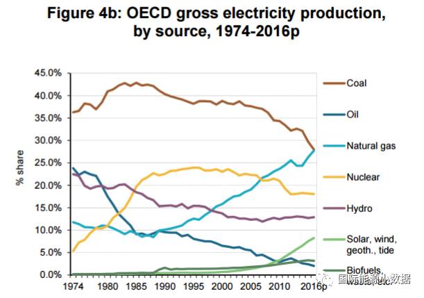 整體而言,2016年化石能源占經(jīng)合組織國家發(fā)電比例高達57.6%,其中煤電依然占27.7%,依然是最大的發(fā)電來源。