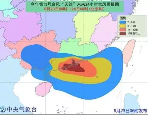中國(guó)中央氣象臺(tái)23日消息,今年第13號(hào)臺(tái)風(fēng)“天鴿”已于23日早晨加強(qiáng)為強(qiáng)臺(tái)風(fēng)級(jí),9時(shí)其中心距離廣東省珠海市東南方約95公里,中心附近最大風(fēng)力有14級(jí)(45米/秒)。對(duì)此,中央氣象臺(tái)發(fā)布今年首個(gè)臺(tái)風(fēng)紅色(最高級(jí))預(yù)警