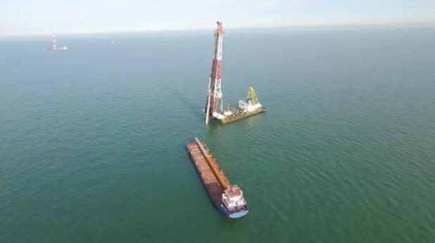 8月22日19點(diǎn)39分,隨著IHC S-800液壓錘的最后一次錘擊,唐山樂亭菩提島海上風(fēng)電場300兆瓦示范工程完成了120根鋼管樁沉樁任務(wù),提前一天完成了沉樁節(jié)點(diǎn)目標(biāo)。
