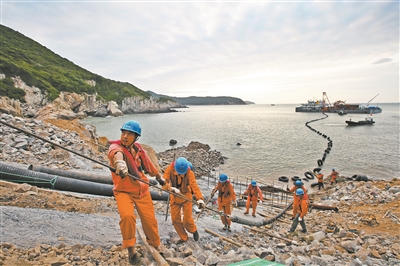 原標題:用于國電舟山普陀6號海上風電場的220千伏海底電纜首端成功登陸六橫島