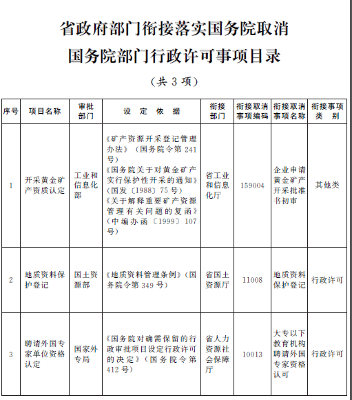 附件:1.省政府部門(mén)銜接落實(shí)國(guó)務(wù)院取消國(guó)務(wù)院部門(mén)行政許可事項(xiàng)目錄(共3項(xiàng))