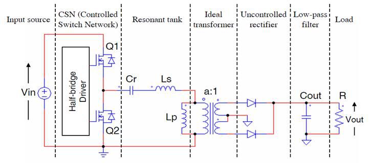 下圖所示為一個(gè)典型的半橋LLC諧振變換器電路: