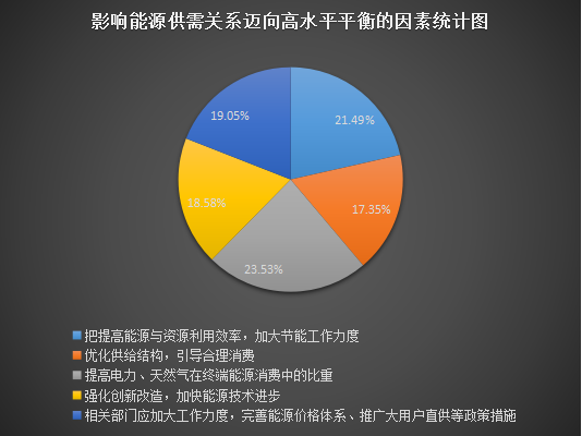 數(shù)據(jù)顯示,各個選項分布趨于平均,由此可見,能源供需關(guān)系的平衡發(fā)展需要行政、生產(chǎn)和研發(fā)等部門各方面的共同努力,也會對能源行業(yè)的方方面面帶來影響。業(yè)內(nèi)專家表示,眼下,我國經(jīng)濟正在著力調(diào)整發(fā)展方式,發(fā)展新動能,推動舊動能改造升級,能源行業(yè)要對原有存量產(chǎn)能的結(jié)構(gòu)優(yōu)化,能源發(fā)展方式要從粗放式發(fā)展向提質(zhì)增效轉(zhuǎn)變。