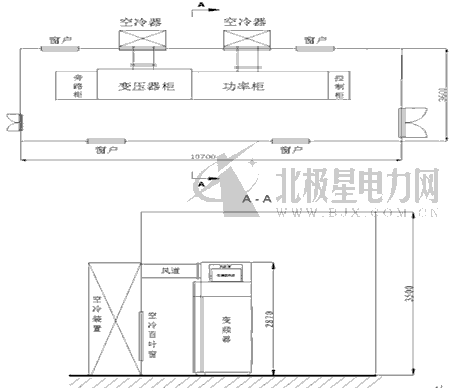 經(jīng)過多方研究論證,結(jié)合現(xiàn)場(chǎng)的安裝位置和空間情況,為兩臺(tái)HARVERT系列一次風(fēng)機(jī)高壓變頻器分別采用了空-水冷卻系統(tǒng)和密閉冷卻系統(tǒng)。從而,既滿足設(shè)備運(yùn)行安全,又解決了冷卻系統(tǒng)運(yùn)行成本高的問題,達(dá)到節(jié)能降耗的目的。