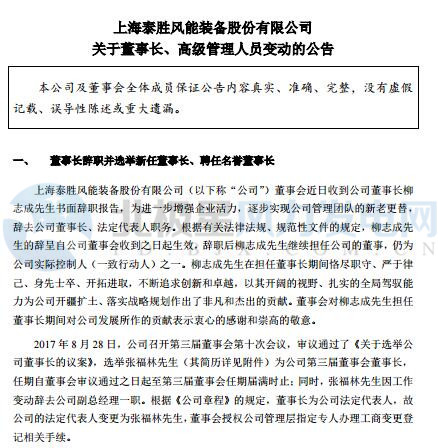 橙電網(wǎng)風(fēng)力發(fā)電網(wǎng)獲悉,泰勝風(fēng)能董事會(huì)今日進(jìn)行了大換血。泰勝風(fēng)能創(chuàng)始人兼董事長(zhǎng)柳志成、總經(jīng)理黃京明雙雙辭職,張福林、鄒濤分別接掌權(quán)杖