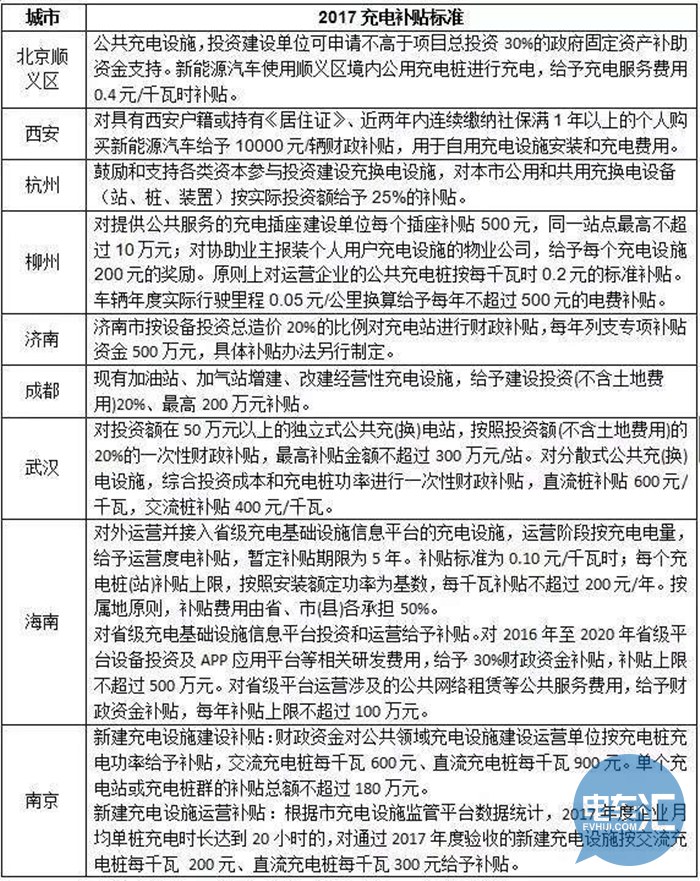 根據(jù)國家充電政策要求,多地出臺了充電相關(guān)規(guī)劃、實(shí)施細(xì)則、管理辦法、補(bǔ)貼和充電標(biāo)準(zhǔn)。據(jù)統(tǒng)計(jì),西安、杭州、成都、武漢等13個(gè)省市明確了充電基礎(chǔ)設(shè)施補(bǔ)貼標(biāo)準(zhǔn)。