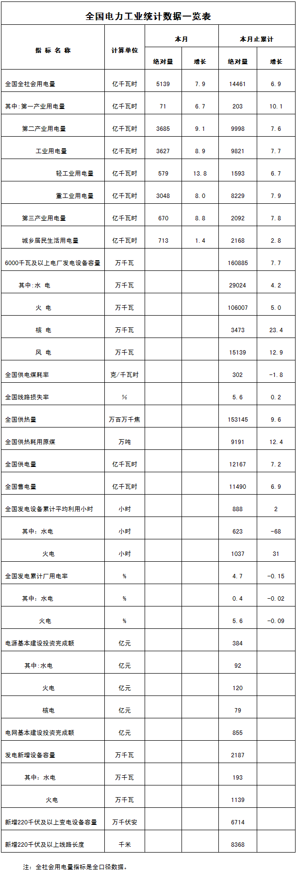 附:全國電力工業(yè)統(tǒng)計數(shù)據(jù)