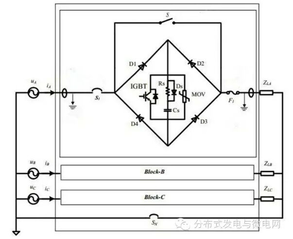 近日,國家知識產(chǎn)權(quán)局公布專利“一種智能型微電網(wǎng)切換與保護(hù)裝置及系統(tǒng)”,申請人為上海電氣集團(tuán)股份有限公司。本發(fā)明公開了一種智能型微電網(wǎng)切換與保護(hù)裝置及系統(tǒng),包括開關(guān)單元和智能控制單元,開關(guān)單元包括并聯(lián)的高速電磁斥力開關(guān)和固態(tài)開關(guān)模塊,用于控制公共電網(wǎng)與微電網(wǎng)的關(guān)合/分?jǐn)?;智能控制單元包括信息采集與處理模塊、故障判別模塊、中央控制單元以及驅(qū)動與保護(hù)模塊,信息采集與處理模塊用于獲取采樣信號,故障判別模塊根據(jù)采樣信號判斷是否出現(xiàn)電路故障,中央控制單元針對故障判別模塊的判斷結(jié)果進(jìn)行處理,根據(jù)