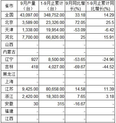2014年1-9月全國(guó)環(huán)境監(jiān)測(cè)專用儀器儀表產(chǎn)量分省市統(tǒng)計(jì)表