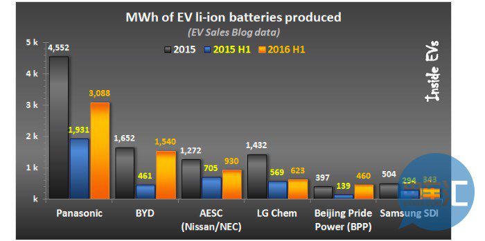 根據(jù)統(tǒng)計(jì),全球2016上半年生產(chǎn)的動(dòng)力電池產(chǎn)量增長(zhǎng)了81%(達(dá)到了8500兆瓦時(shí)),而全球電動(dòng)汽車的增速也僅僅為50%。