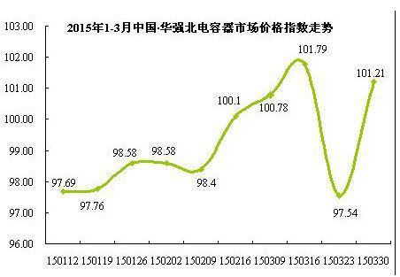 數(shù)據(jù)顯示,2015年3月中國˙華強北電容器市場月均價格指數(shù)為100.33點,1-3月中國˙華強北電容器市場月均價格指數(shù)為99.24點,高于1-2月的月均值。
