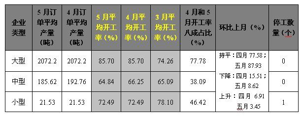 從以上表格數(shù)據(jù)中可知,雖然大型和小型企業(yè)的4月份和5月開工率都是持平的,但相比3月份大型企業(yè)明顯優(yōu)于中小企業(yè),步入了旺季的節(jié)奏。而中小型企業(yè)卻因這期間銅價(jià)波動,市場蕭條等影響,較3月份的訂單及開工率都受此拖累,呈現(xiàn)下滑趨勢。小企的某先生告知我們:"這個銅價(jià)那么不穩(wěn),今年生意難做死了,虧大了,估計(jì)后期也好不到哪里去,趁現(xiàn)在天氣轉(zhuǎn)入夏季,轉(zhuǎn)行做塑料行業(yè)了,之前的生意全部都清理完畢。"