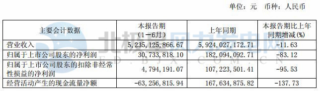 時代新材2017年上半年主要會計(jì)數(shù)據(jù)