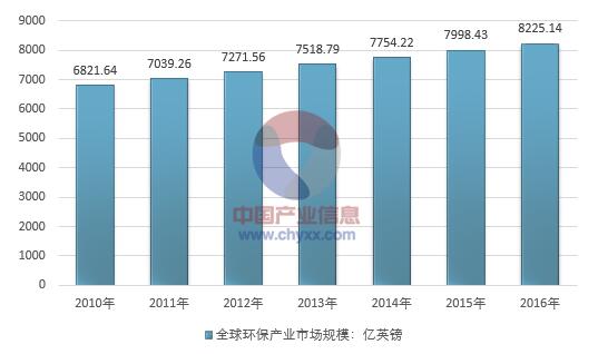 隨著全球經(jīng)濟(jì)一體化、環(huán)境保護(hù)和可持續(xù)發(fā)展的呼聲日盛,世界環(huán)保市場(chǎng)也出現(xiàn)迅速發(fā)展的勢(shì)頭,發(fā)達(dá)國(guó)家和地區(qū)在技術(shù)水平和市場(chǎng)份額上占有絕對(duì)的優(yōu)勢(shì),2016年全球環(huán)保產(chǎn)業(yè)市場(chǎng)規(guī)模將達(dá)到8225.14億英鎊。