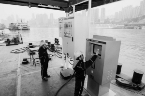 下午5點鐘,采訪臨近結(jié)束,“長江探索”號的旅客開始陸續(xù)登船,姚榜穿上了西裝皮鞋,站在船上迎接每一位旅客。忙碌之余,他悄悄告訴記者,在這樣一艘豪華游輪上,每位船員都應(yīng)該是一名紳士,“這還多虧了港口岸電,讓我脫下沾滿油漬的工作服,西裝革履地面對每一位乘客。”