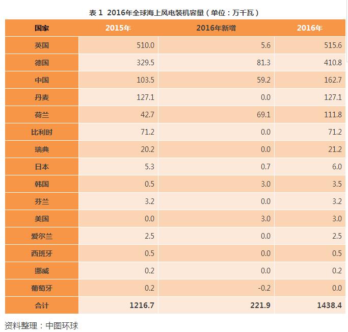 原標(biāo)題:【專題數(shù)據(jù)】2016年全球海上風(fēng)電裝機(jī)容量:歐洲發(fā)展迅猛,中國(guó)排名第三
