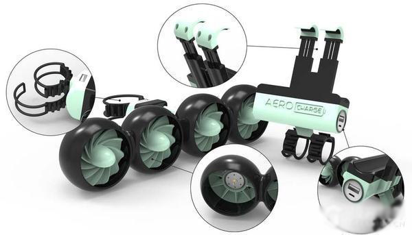 這套AeroCharge系統(tǒng)包括四個(gè)用來(lái)收集盡可能大量風(fēng)的風(fēng)扇,掛在自行車(chē)車(chē)把上。并且風(fēng)扇的扇葉都采用了空氣動(dòng)力學(xué)設(shè)計(jì),這樣一來(lái)無(wú)論騎行速度如何,均能夠產(chǎn)生盡量多的電能。