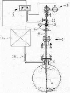儀器和壓力變送器的信號輸出端與所述流量積算儀的信號輸入端相連,采用上述技術特征后可測量出管道內溫合流體的準確溫度和壓力,并把測量結構輸入到流量積算儀,最終結合管道內混合流體的流量、混合流體常溫常壓下的密度,并以管道內的實際溫度和壓力作為補償,可在流量積算儀內計算出管道內混合流體的質量流量。