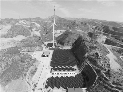 圖為青海省西寧市城東區(qū)韻家口的國(guó)家電網(wǎng)公司風(fēng)光水儲(chǔ)微電網(wǎng)示范基地全景。