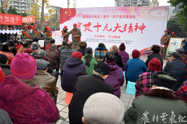 “十九大的主題是什么?”、“‘初心’具體指的是什么?”……在共產(chǎn)黨員服務(wù)隊(duì)設(shè)置的十九大精神宣講站前,早已人頭攢動(dòng),過(guò)往市民紛紛駐足,踴躍搶答,并在印有“堅(jiān)定信念跟黨走 擼起袖子加油干”的橫幅上簽名。隨后,志愿者們還就智能電表如何充值進(jìn)行了現(xiàn)場(chǎng)演示,并手把手教市民們使用;為空巢老人、殘疾人、特殊服務(wù)對(duì)象等義務(wù)檢查家中用電線路及設(shè)備,指導(dǎo)他們正確使用電氣取暖設(shè)施,宣講電氣著火等急救措施,宣講電價(jià)調(diào)整政策,叮囑市民們冬季用電安全。