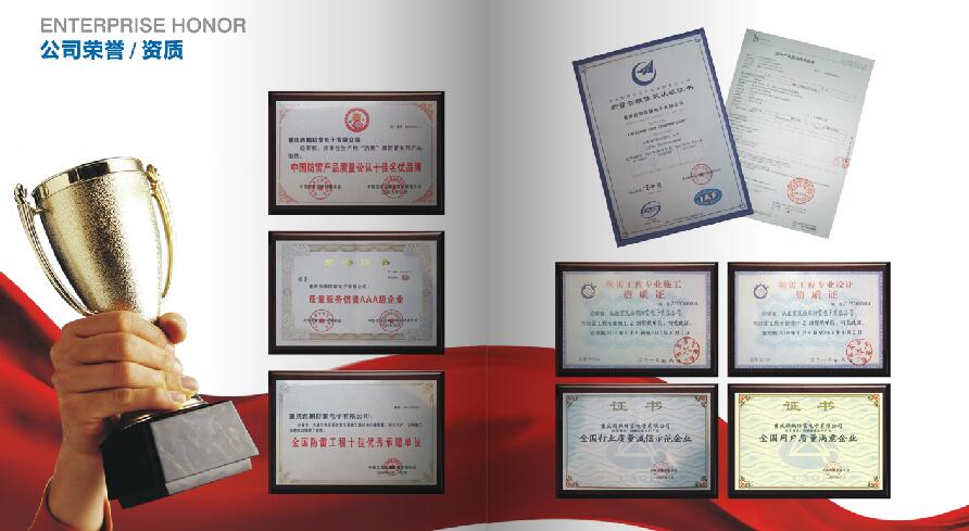 依托西部唯一直轄市——重慶得天獨(dú)厚的商務(wù)環(huán)境,秉持“追求卓越,共享發(fā)展”的理念,堅(jiān)持“和諧、誠信、負(fù)責(zé)、主動、精細(xì)”的企業(yè)文化,憑借努力拼搏不斷創(chuàng)新的企業(yè)精神,在客戶的信任、朋友的關(guān)心、政府的支持和全體員工的共同努力下,通過抓質(zhì)量、抓管理、抓品牌,短短幾年時間已成為中國西部地區(qū)知名度高、影響力大和最具競爭力的優(yōu)勢防雷企業(yè)。