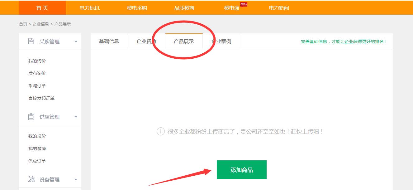 第二步:找到【產(chǎn)品展示】,點(diǎn)擊“添加商品”